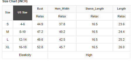 US Size Range. Small 0-4, Medium 6-8, Large 10-12, XL 14-16, 2X 18-20