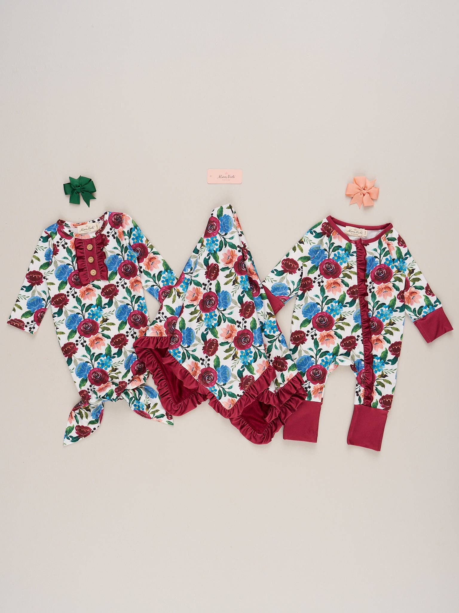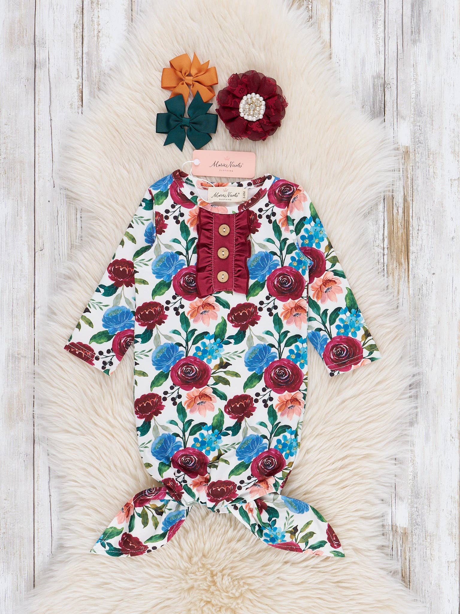 The Falling for Florals Knot Gown is a delicate and charming choice that’s perfect for newborn snuggles and special moments. Featuring soft floral prints and a breathable, stretchy fabric, this gown from Marie Nicole Clothing blends garden-inspired elegance with cozy comfort. Designed with a convenient knotted bottom for easy diaper changes, it’s ideal for nap time, cuddles, and picture-perfect memories.